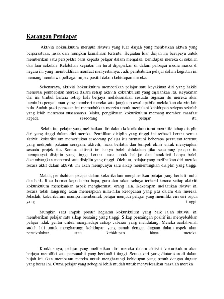 Mencungkil dan mengasah bakat serta potensi murid. Betul aktiviti luaran berkaitan dengan ekonomi. Karangan Punca Pelajar tidak Menyertai Aktiviti kokurikulum.